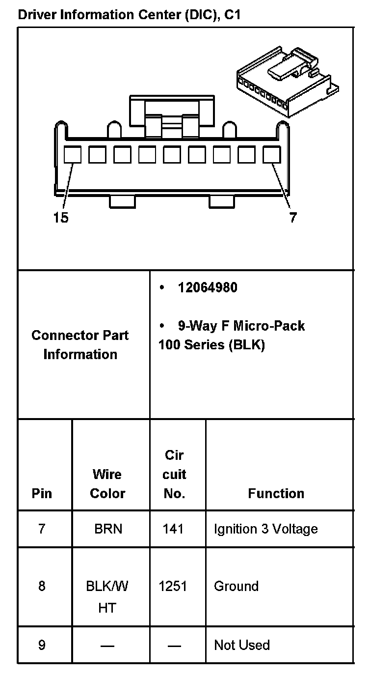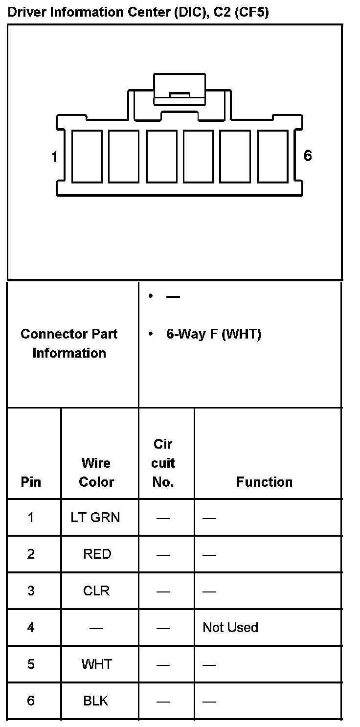 Driver Information Center (DIC), C2 (With RPO Code CF5):