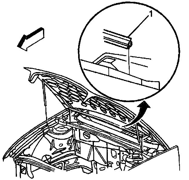 4. Remove the hood side rear seal from the pinch-weld flange (1).