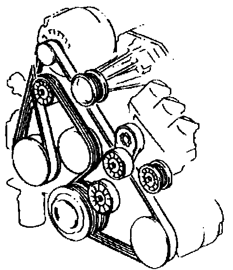 The supercharged 3800 engine utilizes two drive belts. The outer drive belt drives the supercharger. The inner drive belt drives the following components: