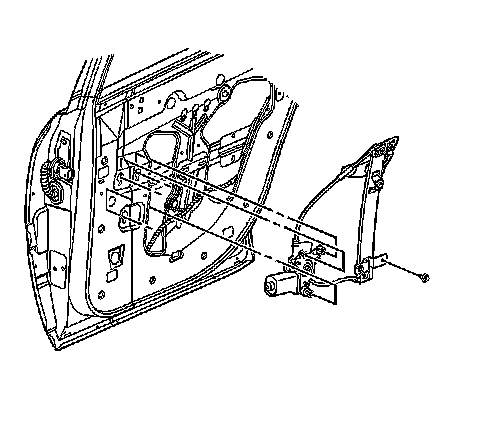 9. Remove the rear window regulator, lifting up and out from the key slots on the rear door inner panel and through the rear access hole.