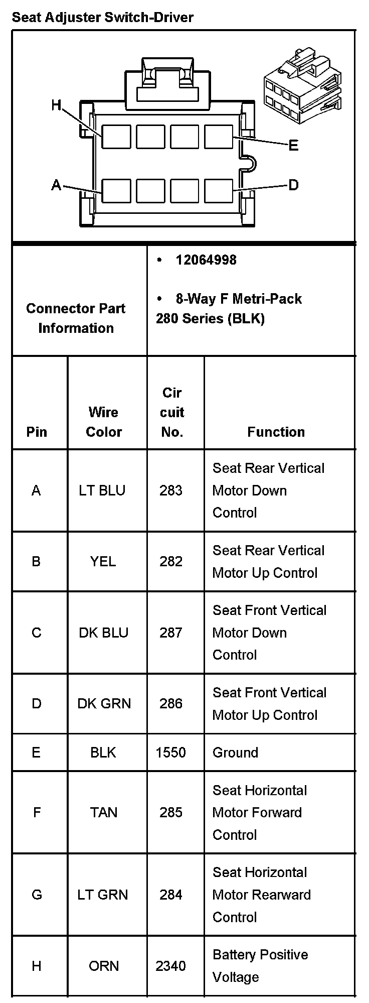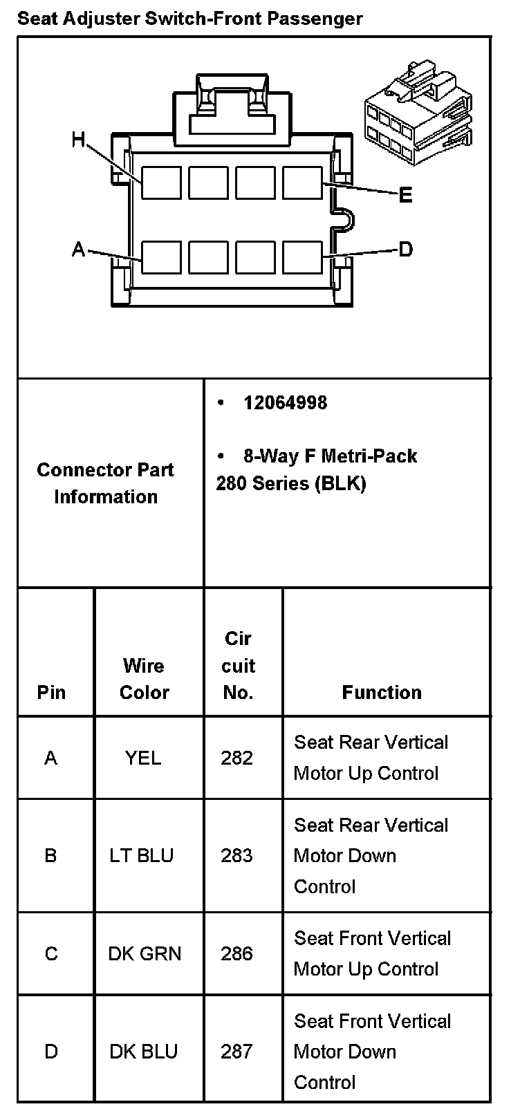 Seat Adjuster Switch-Front Passenger Part 2: