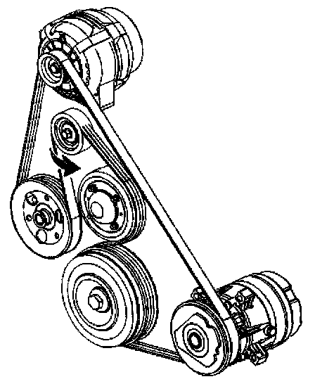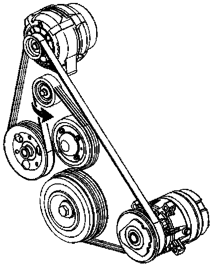 Important: After the new drive belt is installed, make sure that the mark on the drive belt tensioner is within range, as indicated on the tensioner housing.