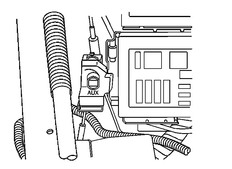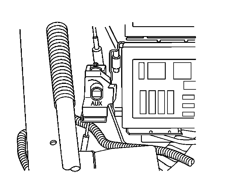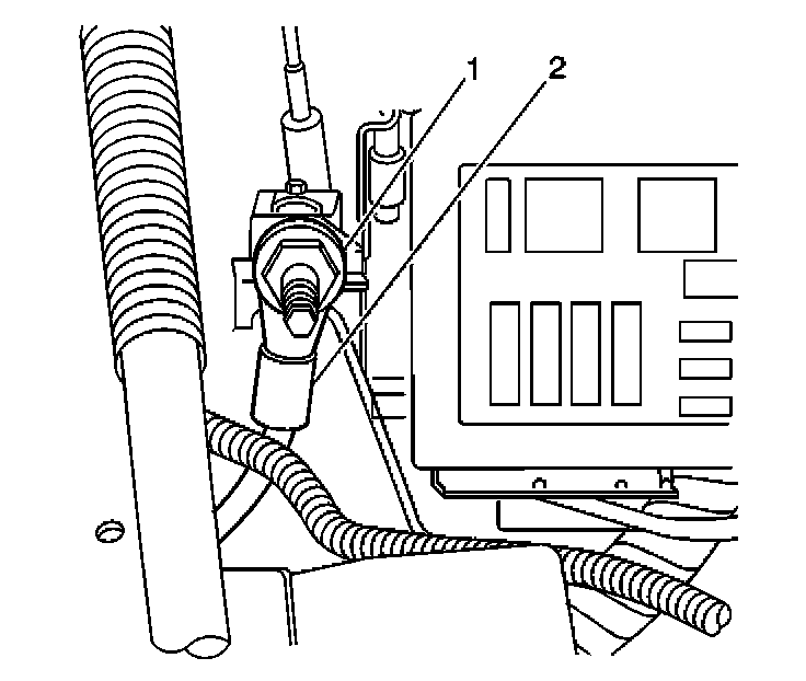 6. Remove the positive battery cable (2) from the underhood accessory wiring junction block.