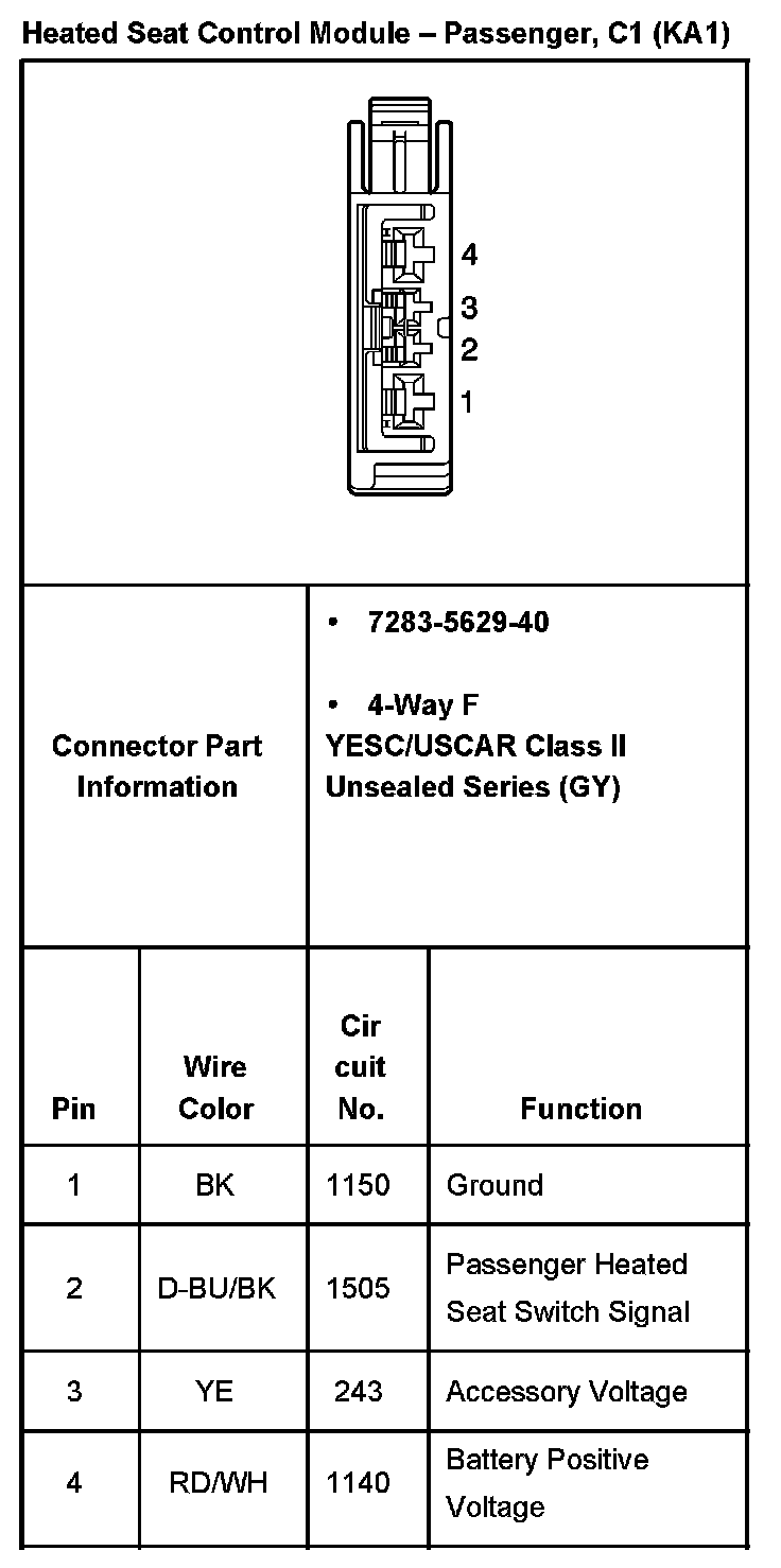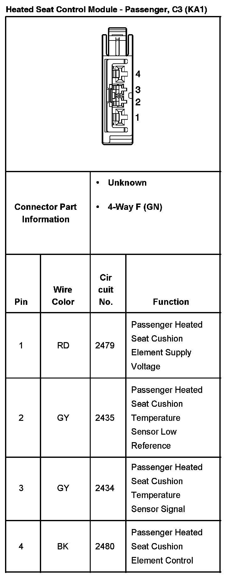 Heated Seat Control Module - Passenger, C1 (With RPO Code KA1):