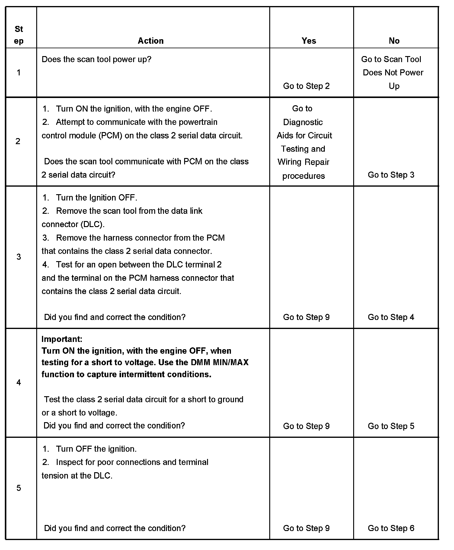 2. A partial loss or intermittent loss of communication in the class 2 serial data circuit uses a different procedure than a total loss of communication of the class 2 serial data circuit.
