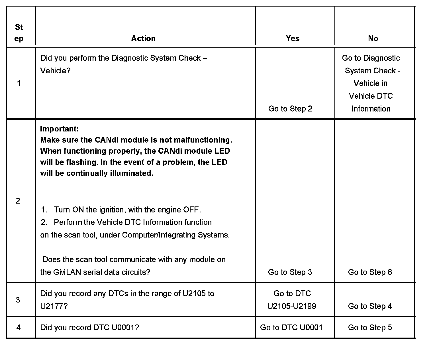The numbers below refer to the step numbers on the diagnostic table.