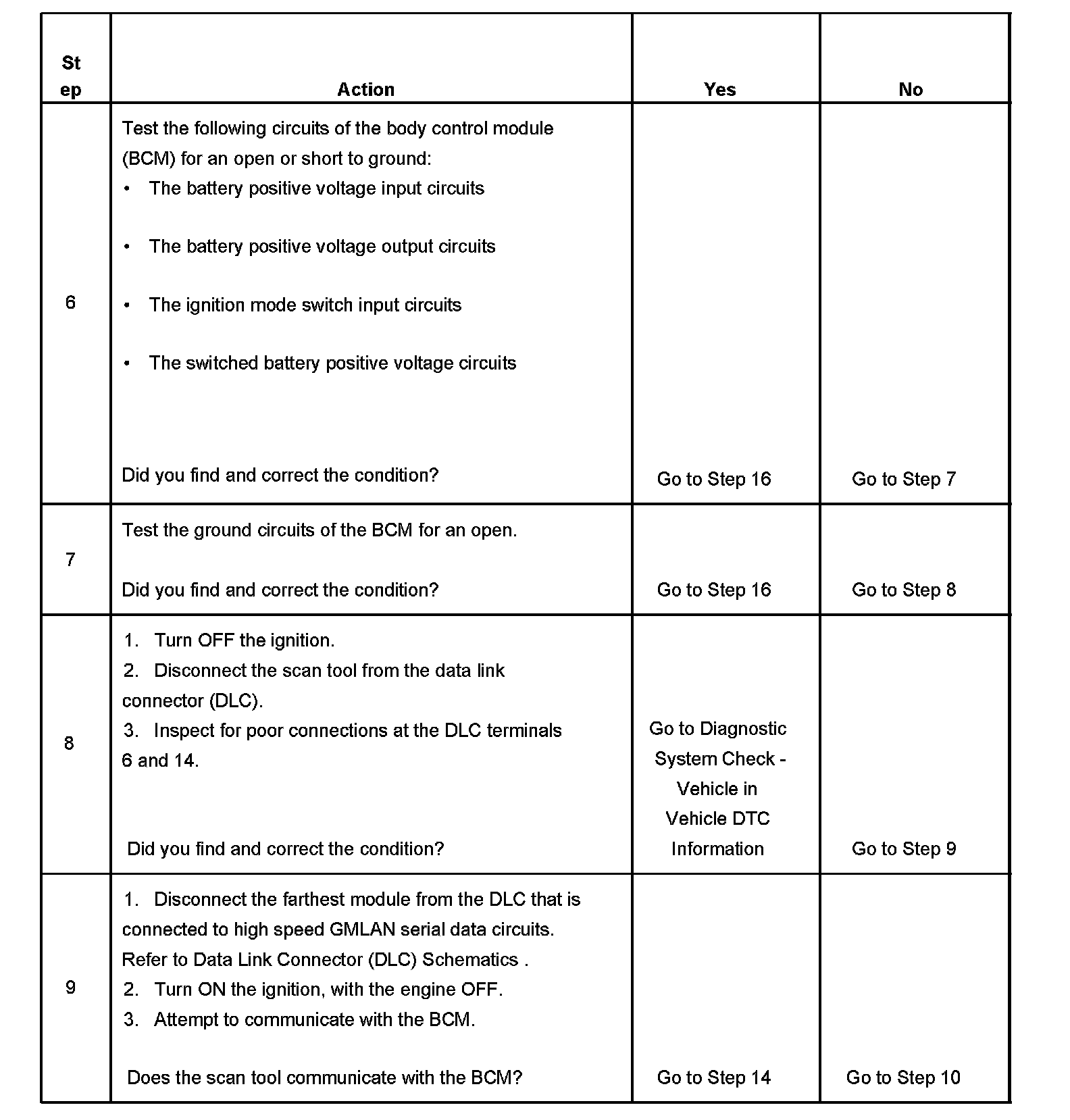 8. Data link connector terminals 6 and 14 provide the connection to the GMLAN serial data high circuit and the GMLAN serial data low circuit respectively.