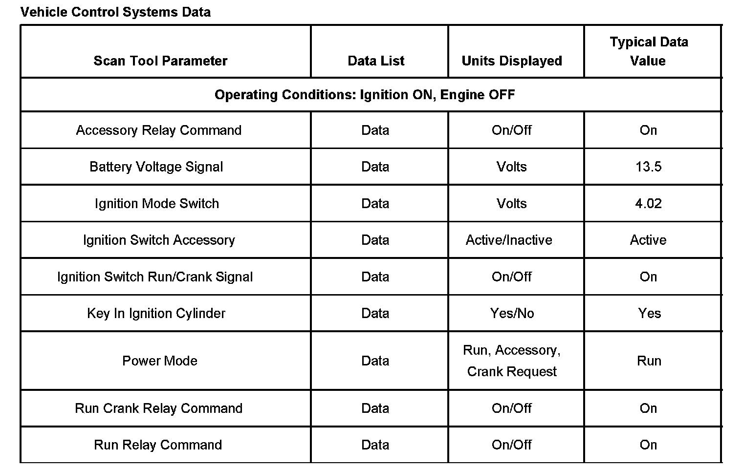Vehicle Control Systems Data:
