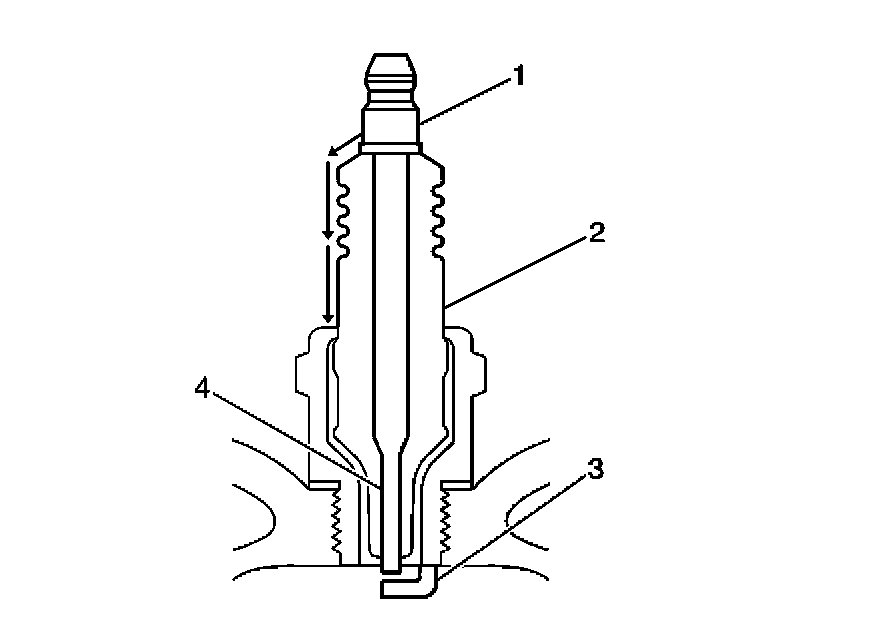 - Inspect for the correct spark plug torque. Refer to Ignition System Specifications. Insufficient torque can prevent correct spark plug operation. An over torqued spark plug, causes the insulator (2) to crack.