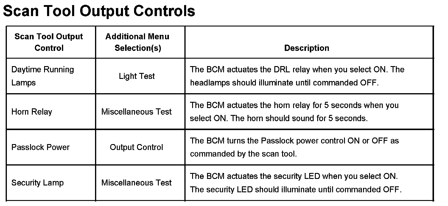 Scan Tool Output Controls:
