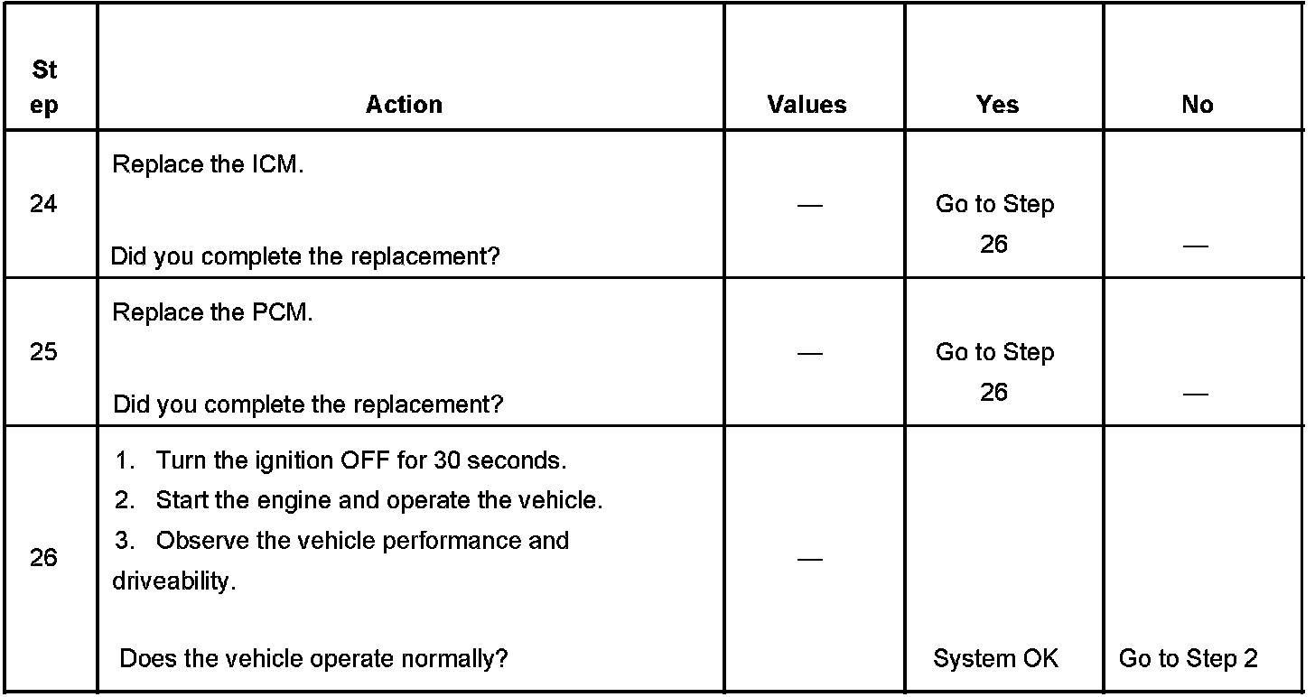 Each ignition coil supplies secondary voltage to a pair of spark plugs. This is called a waste spark ignition system. The powertrain control module (PCM) supplies a signal on each of the ignition control (IC) timing circuits to the ignition control module (ICM). The ICM fires the correct ignition coil at the correct time based on the signals. The ICM detects if cylinder 1 or cylinder 3 is on the compression stroke by sensing the secondary voltage and polarity of each side of the ignition coil. The ICM detects this voltage with sensing circuitry integrated into each ignition coil. The higher voltage is on the compressing cylinder.