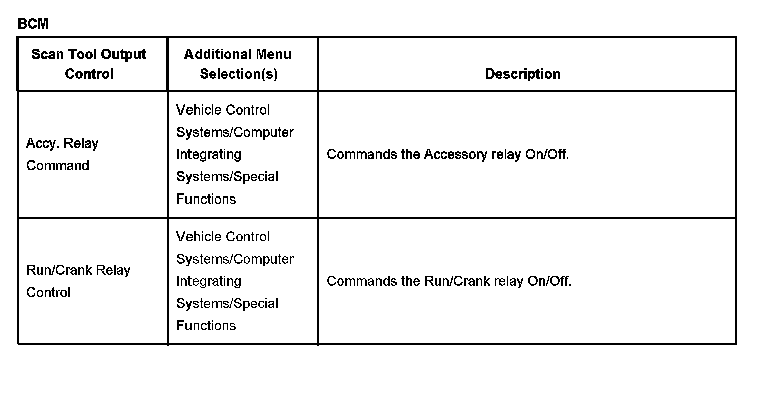 BCM Scan Tool Output Controls: