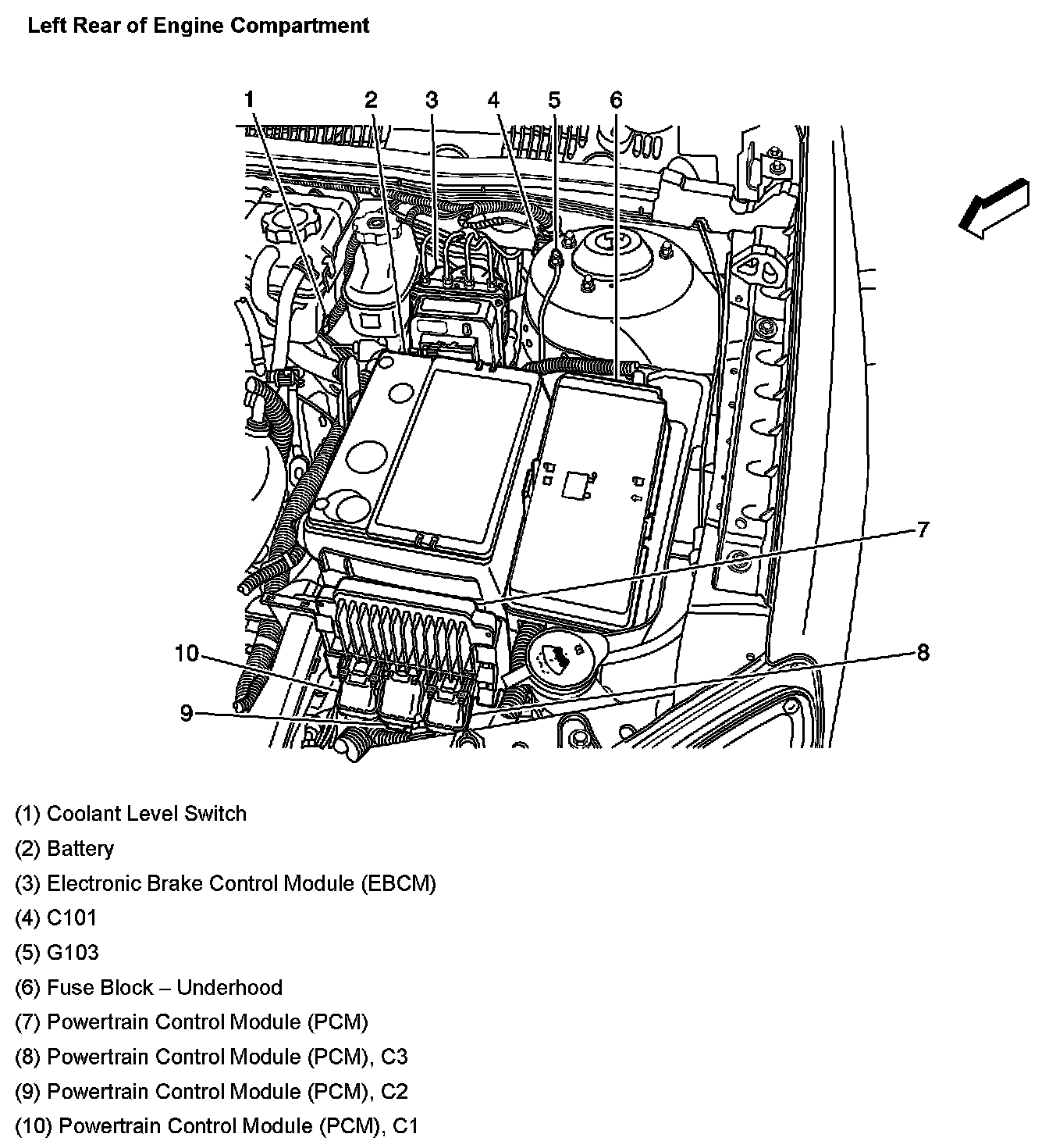 Left Rear Of Engine Compartment: