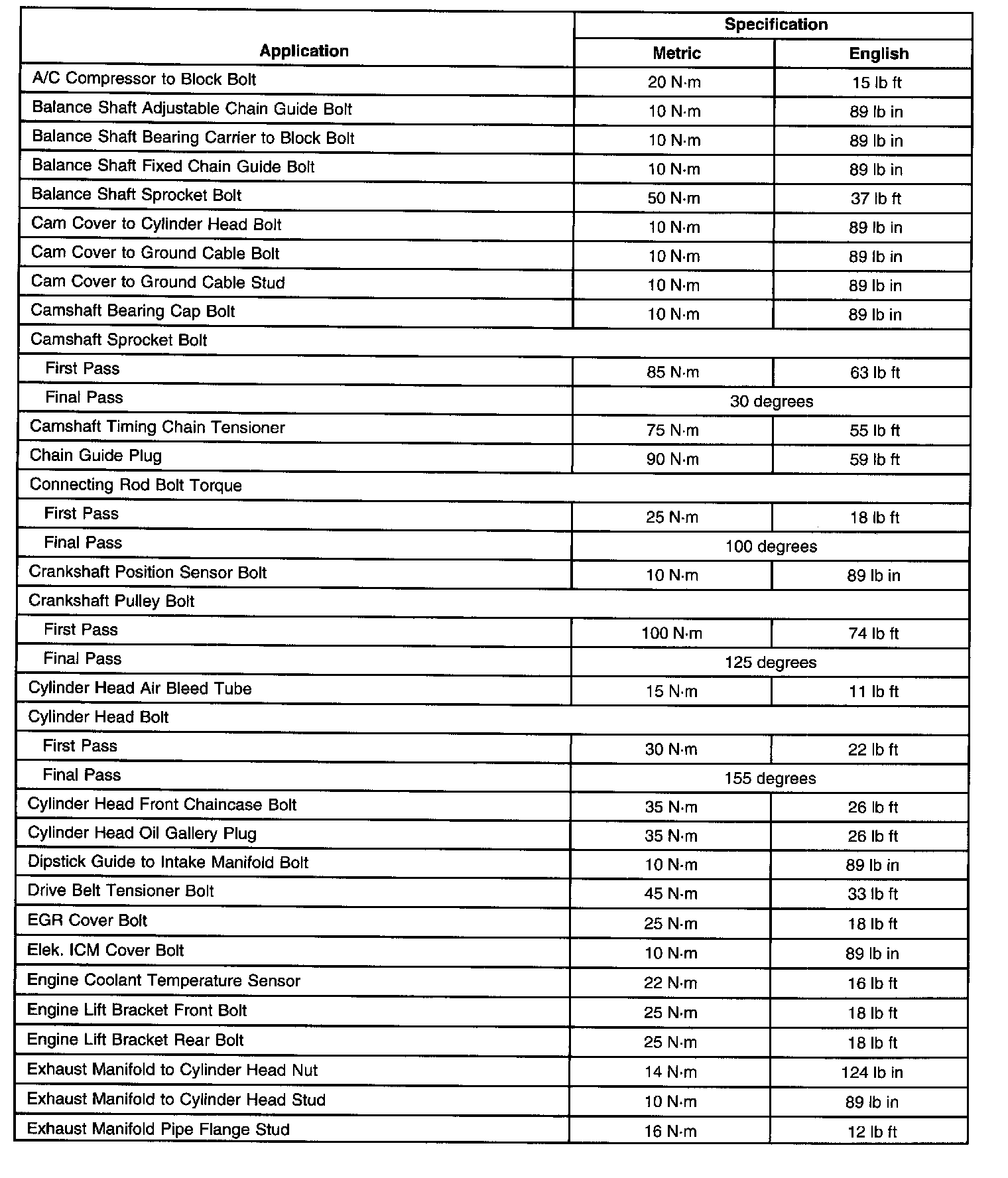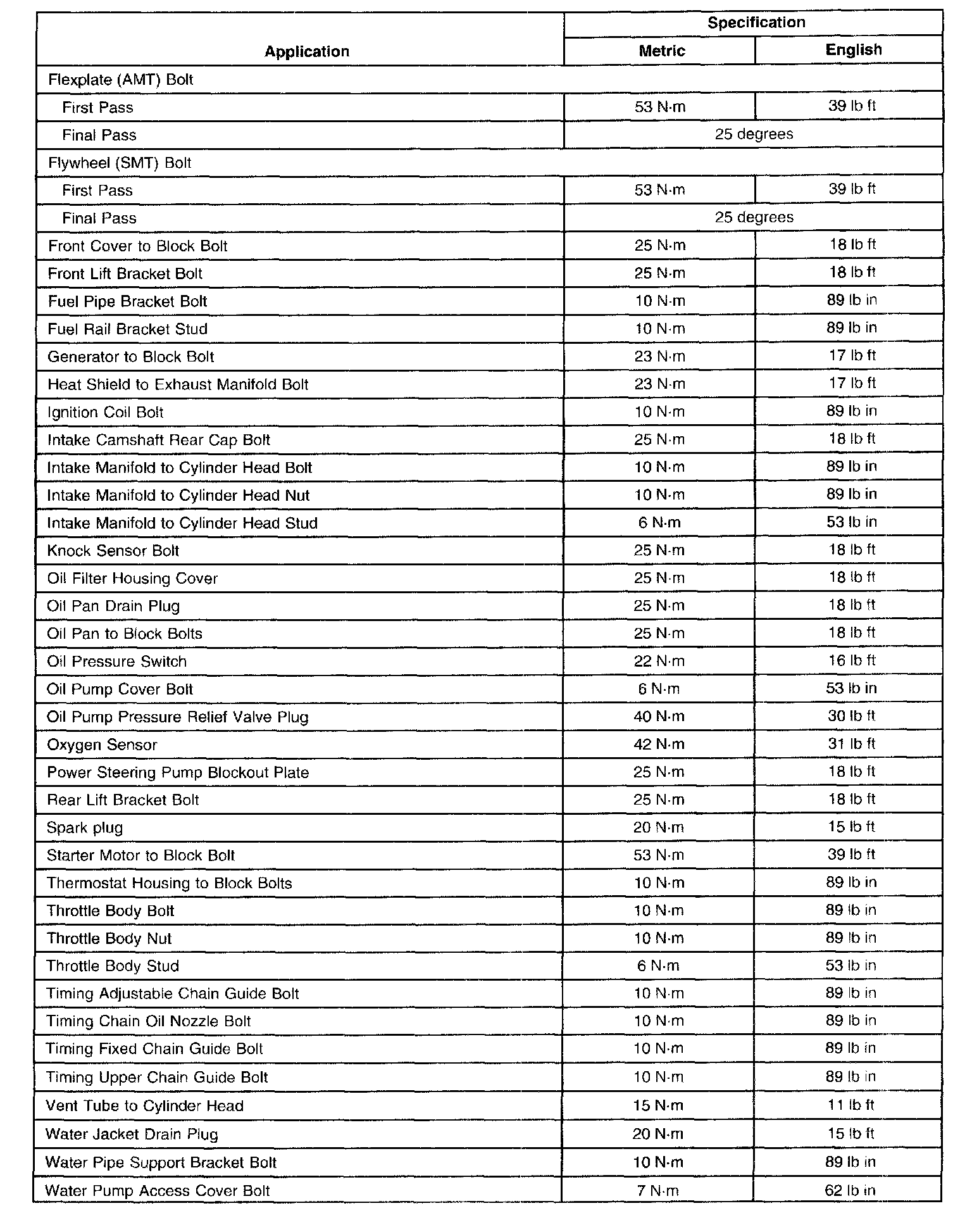 General Engine Tightening Specifications