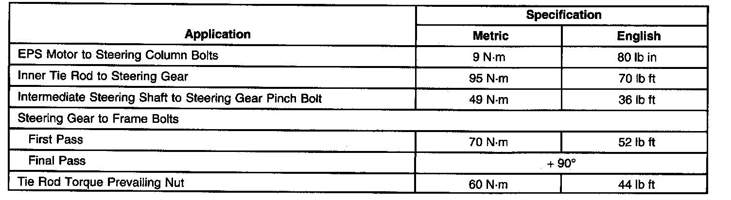 Torque Specifications: