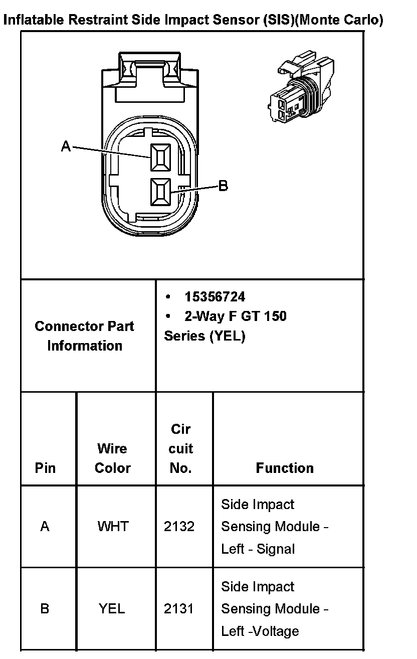 Inflatable Restraint Side Impact Sensor (SIS):