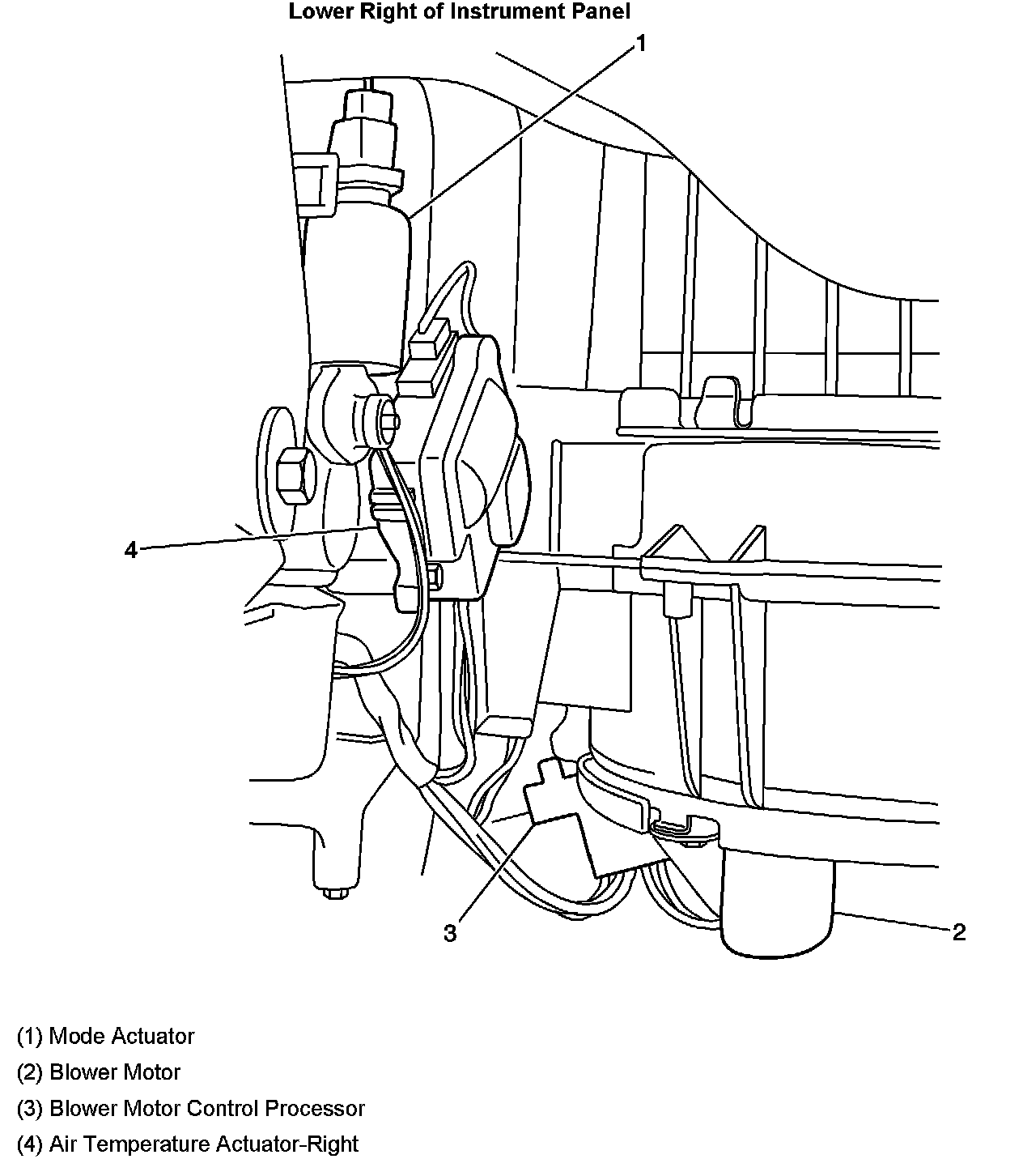 The Blower Motor Control Module is located under the right center of Instrument Panel.