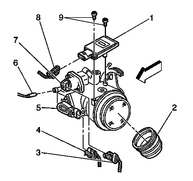3. Remove the MAF sensor screws (9).