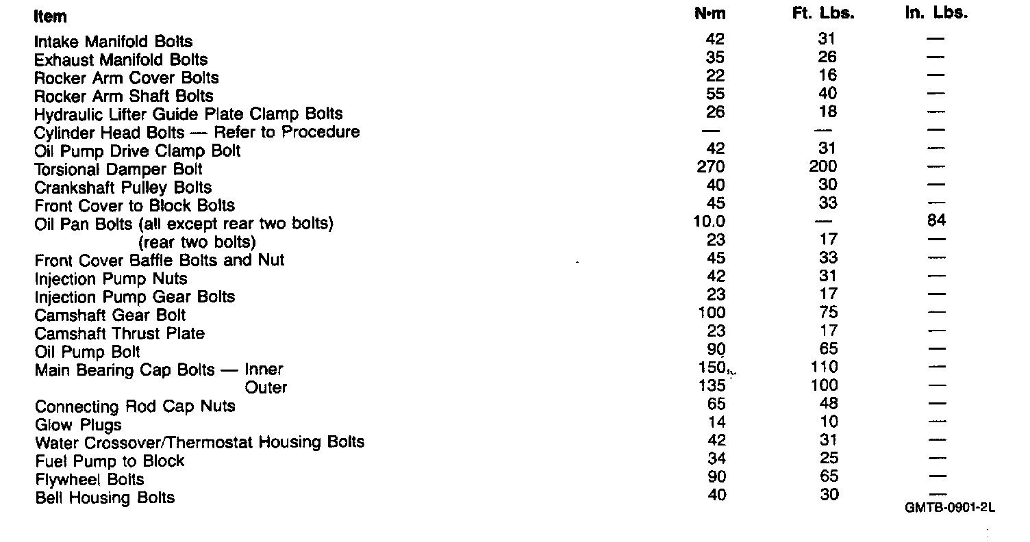 Torque Specifications: