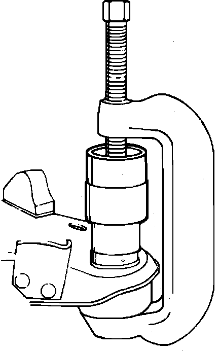 Fig. 7 Pressing lower ball joint from control arm:
