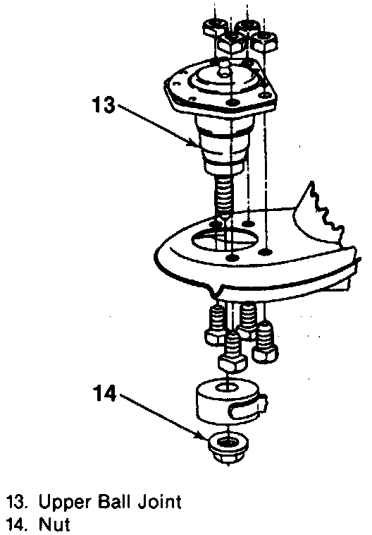 1. Inspect the upper ball joint is spring loaded in its socket and replace the ball joint it there is any lateral movement or if it can be twisted in its socket with the fingers.