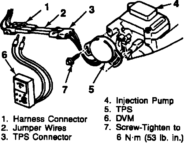 NOTE: Refer to the "Throttle Position Sensor Data" chart for calculating the correct TP sensor voltage setting for all adjustments.