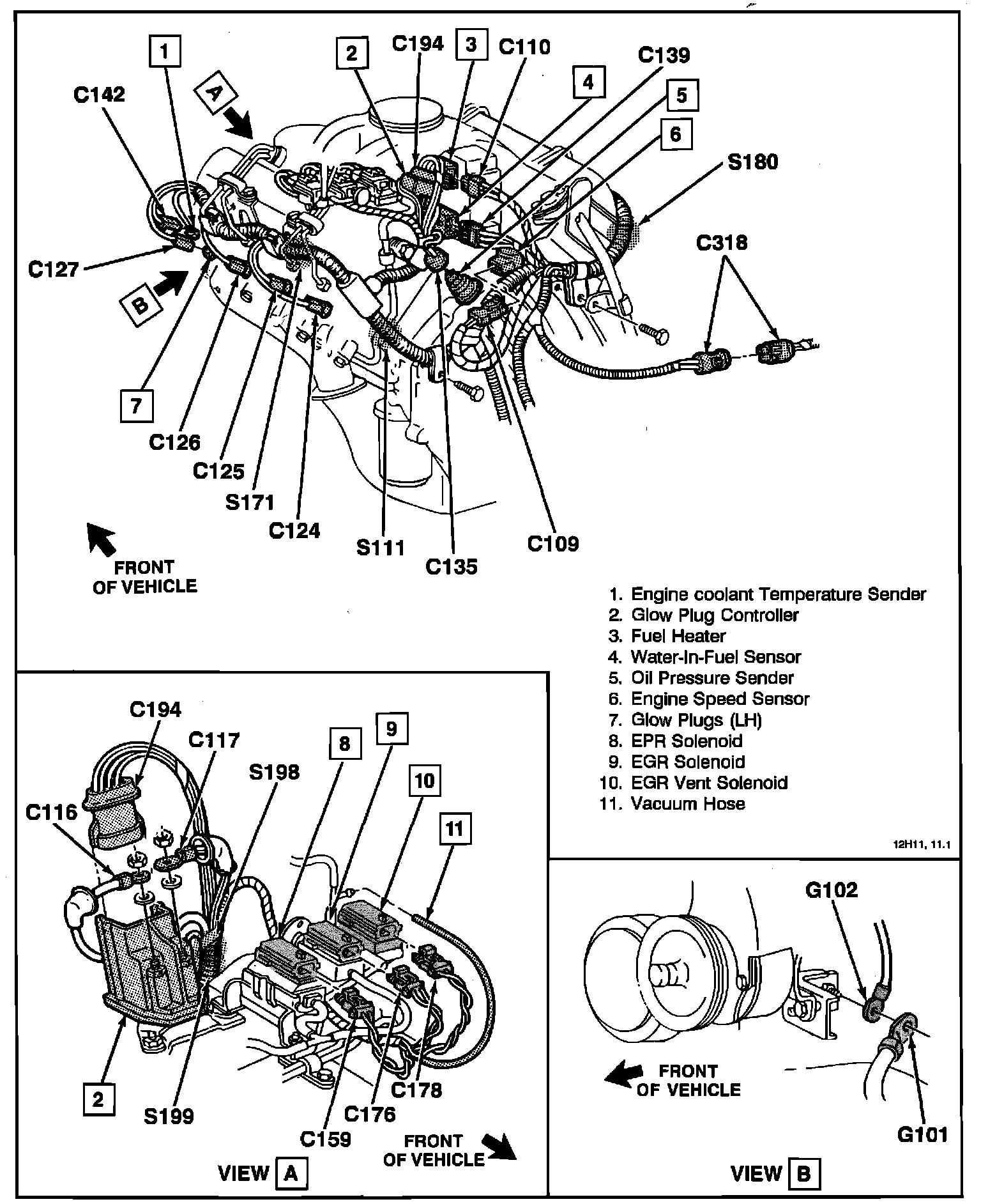 Engine Wiring, Left Hand Side Of Engine - Diesel Engine: