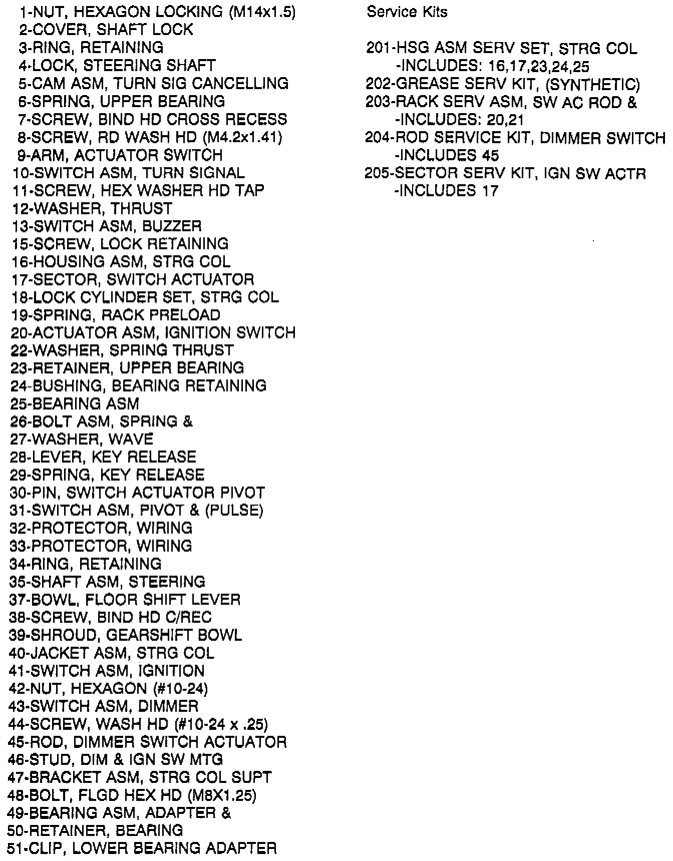 Standard Steering Column - Legend: