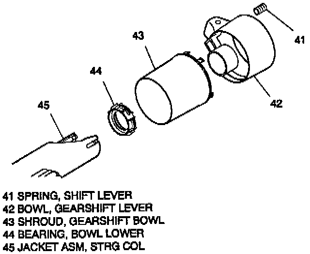 4. Gearshift lever bowl (42) and shroud (43) to jacket assembly (45).