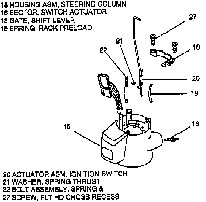 C. Ignition switch actuator assembly (20) with spring & bolt assembly (22).