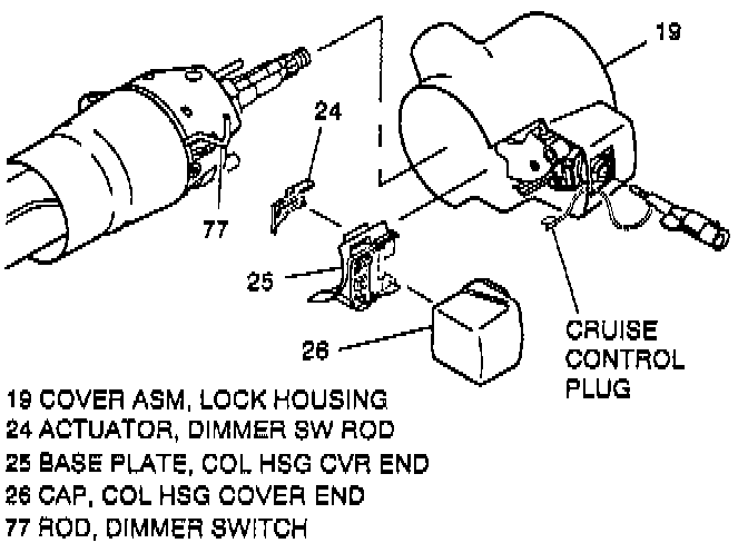 ^ Bottom edge of dimmer switch rod actuator (24) should rest on bend in dimmer switch rod (77).