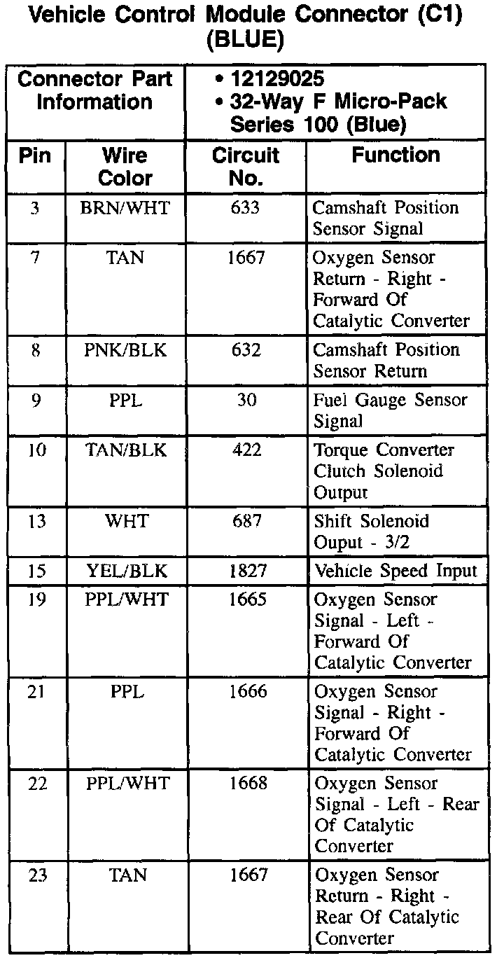 Vehicle Control Module Connector: C1 (Part 1 Of 2):