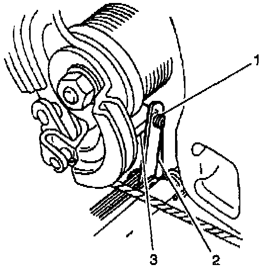 3. Insert a 0.65 mm (0.026 in) feeler gauge (2) between the throttle stop screw (1) and the throttle lever (3).