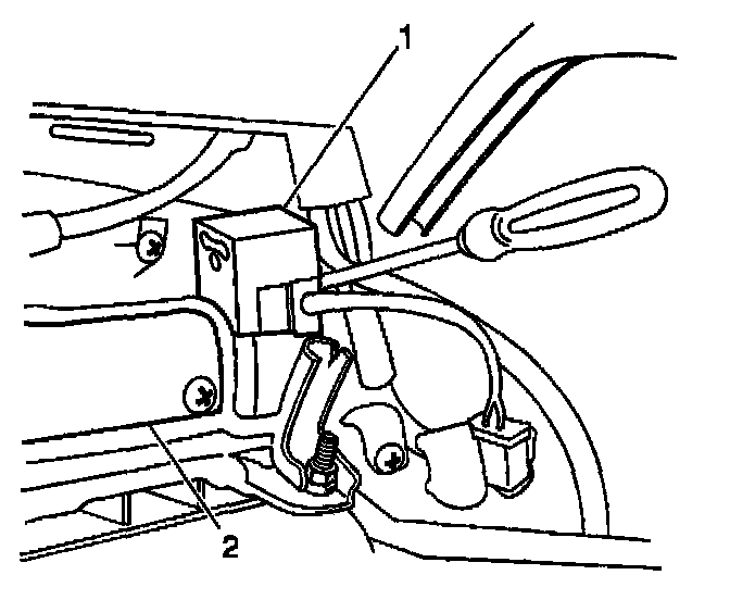 3. Use a flat-bladed screwdriver in order to release the locking tab and remove the audio alarm module (1) from the bracket.