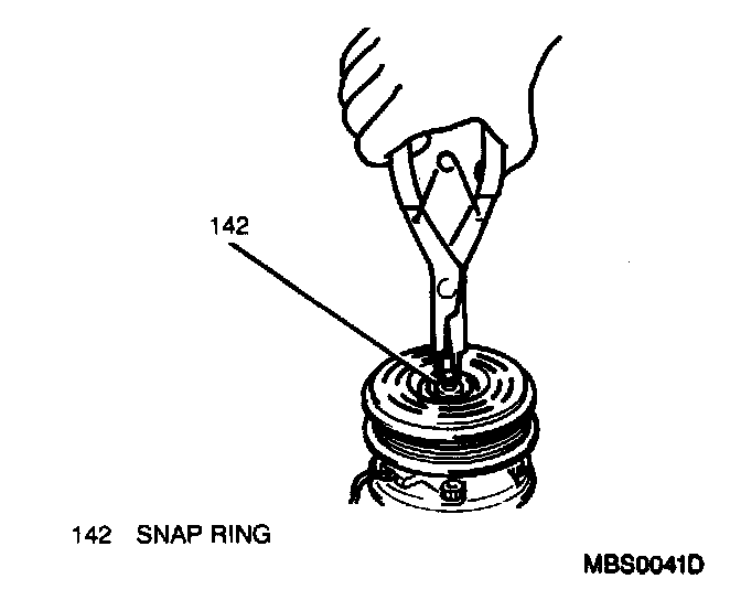 4. Clutch pulley snap ring and shim, using appropriate snap ring pliers.