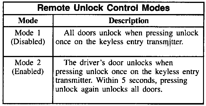 Remote Unlock Control Modes: