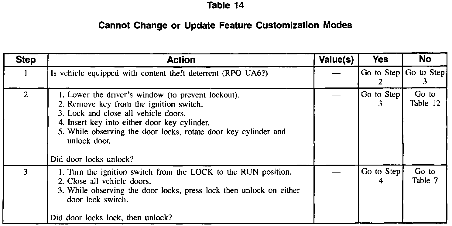 Table14: Cannot Change Feature Customization Modes (Part 1 Of 2):