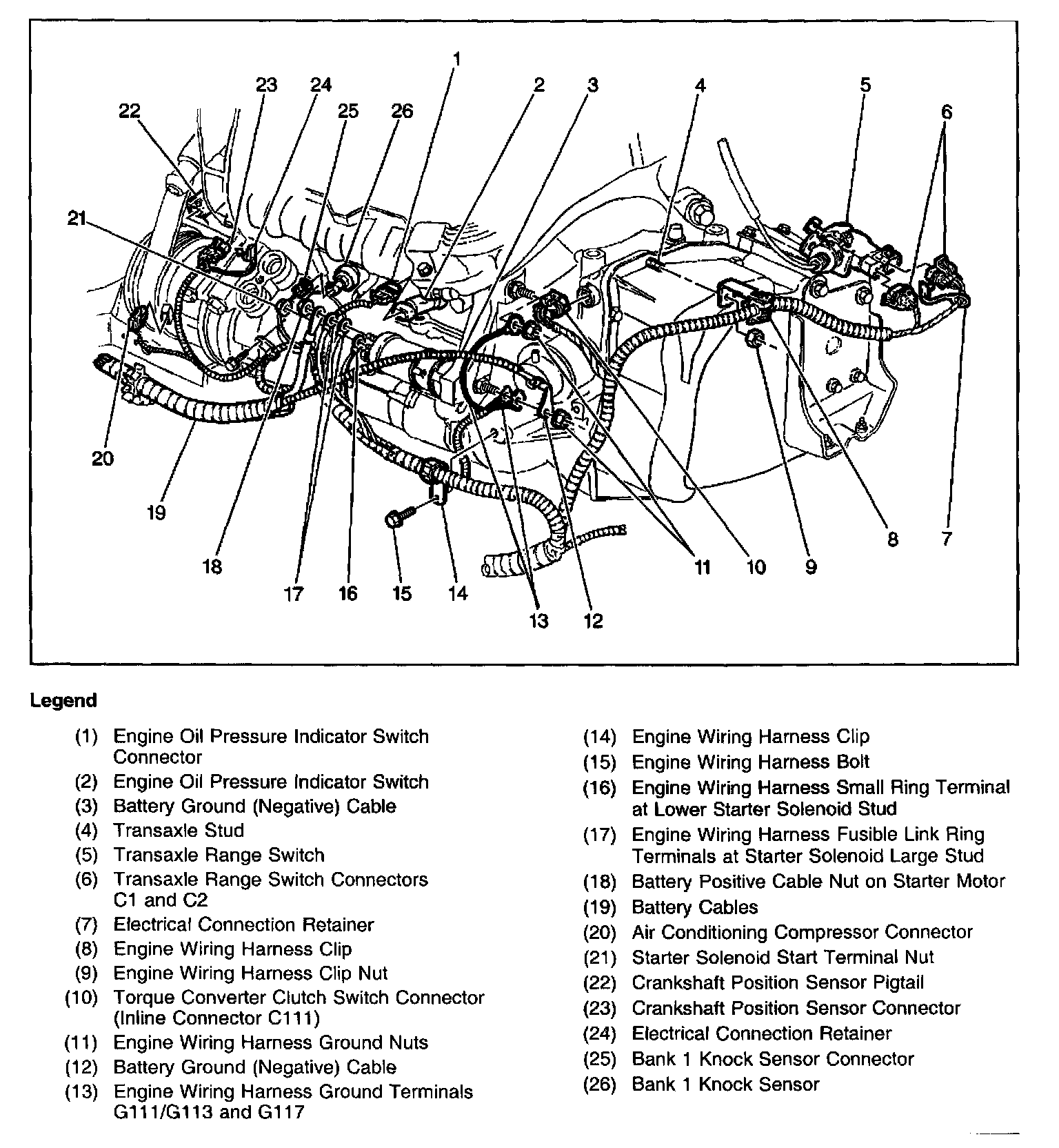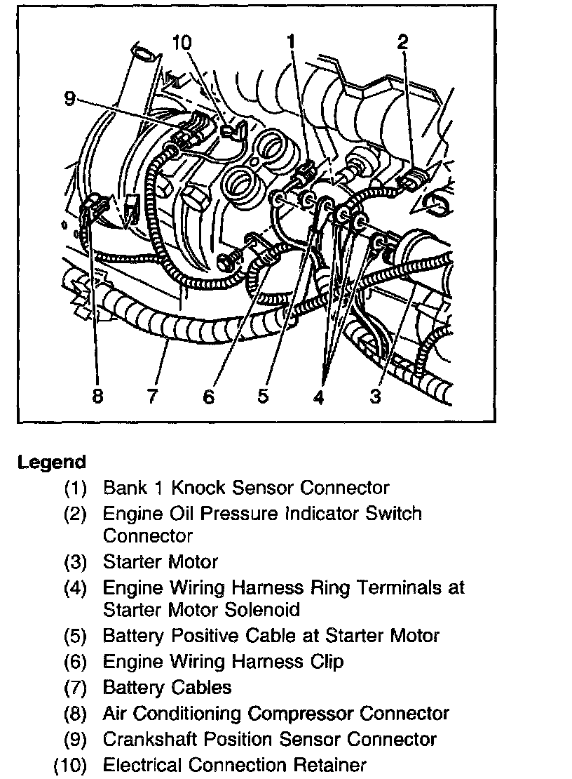 Engine Wiring Harness At Starter Motor And Air Conditioning Compressor: