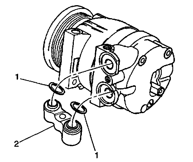 4. Use the new sealing washers(1) in order to install the compressor hose assembly to the compressor.