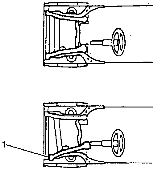 The frame is a rubber-isolated sub-frame in the front of the vehicle. The frame supports the engine and the transaxle and provides the mounting point for the front suspension lower control arms. Any misalignment of the frame will cause a misalignment of the front wheels. Movement of the frame will usually cause an increase in caster on one side and a decrease in caster on the other.
