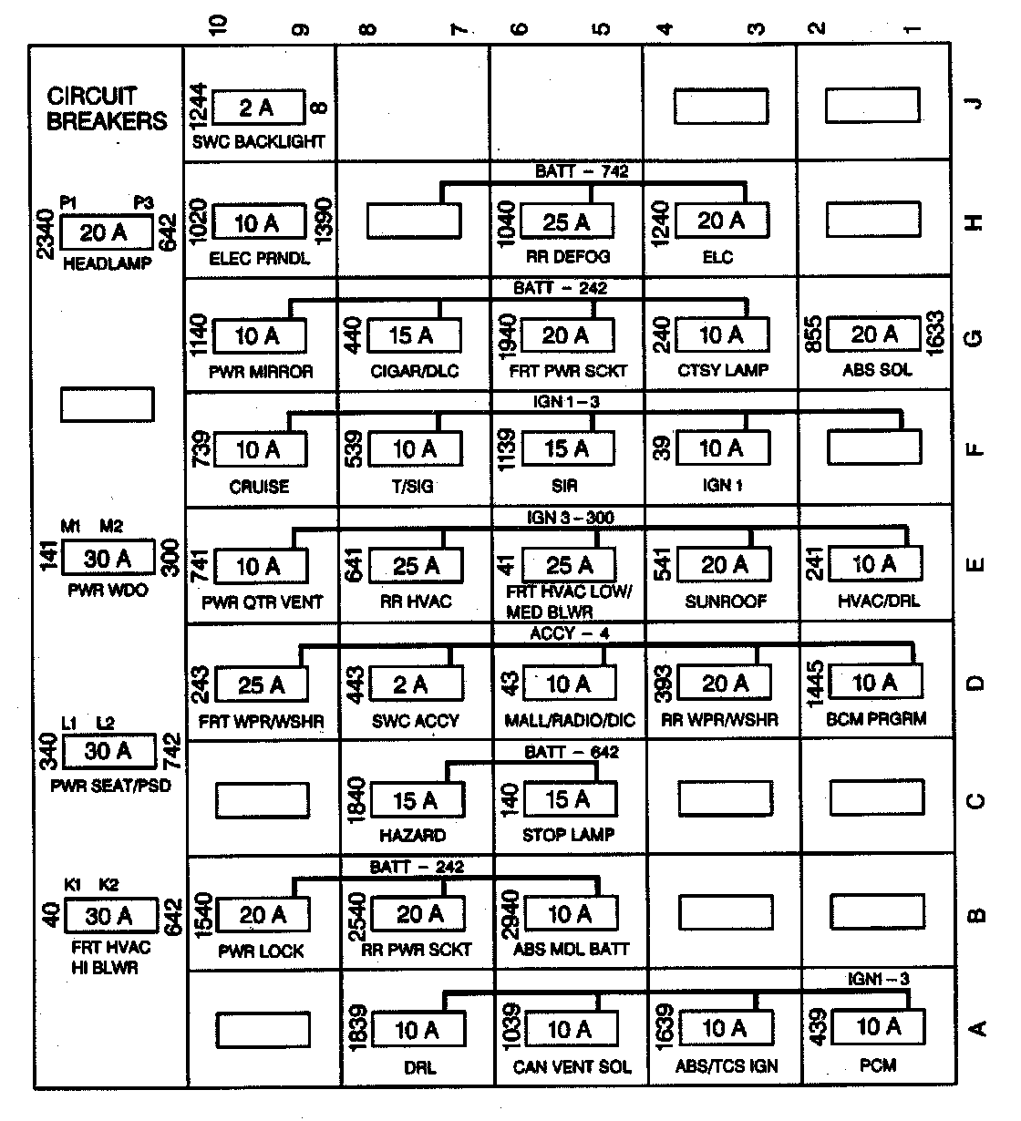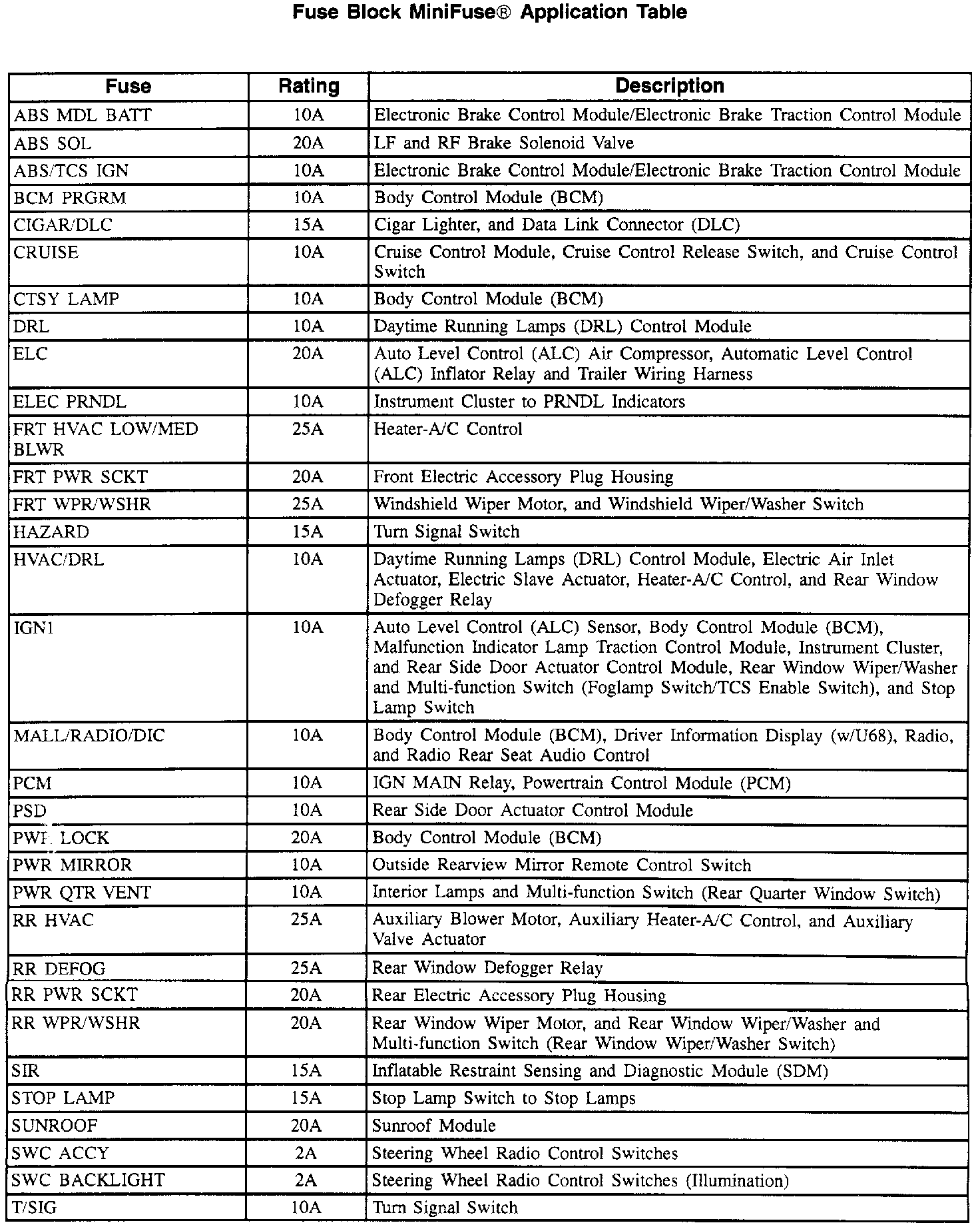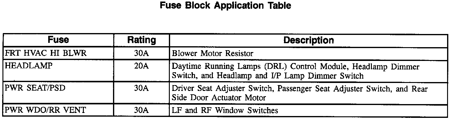 Fuse Block Application Table (Part 1 Of 2):