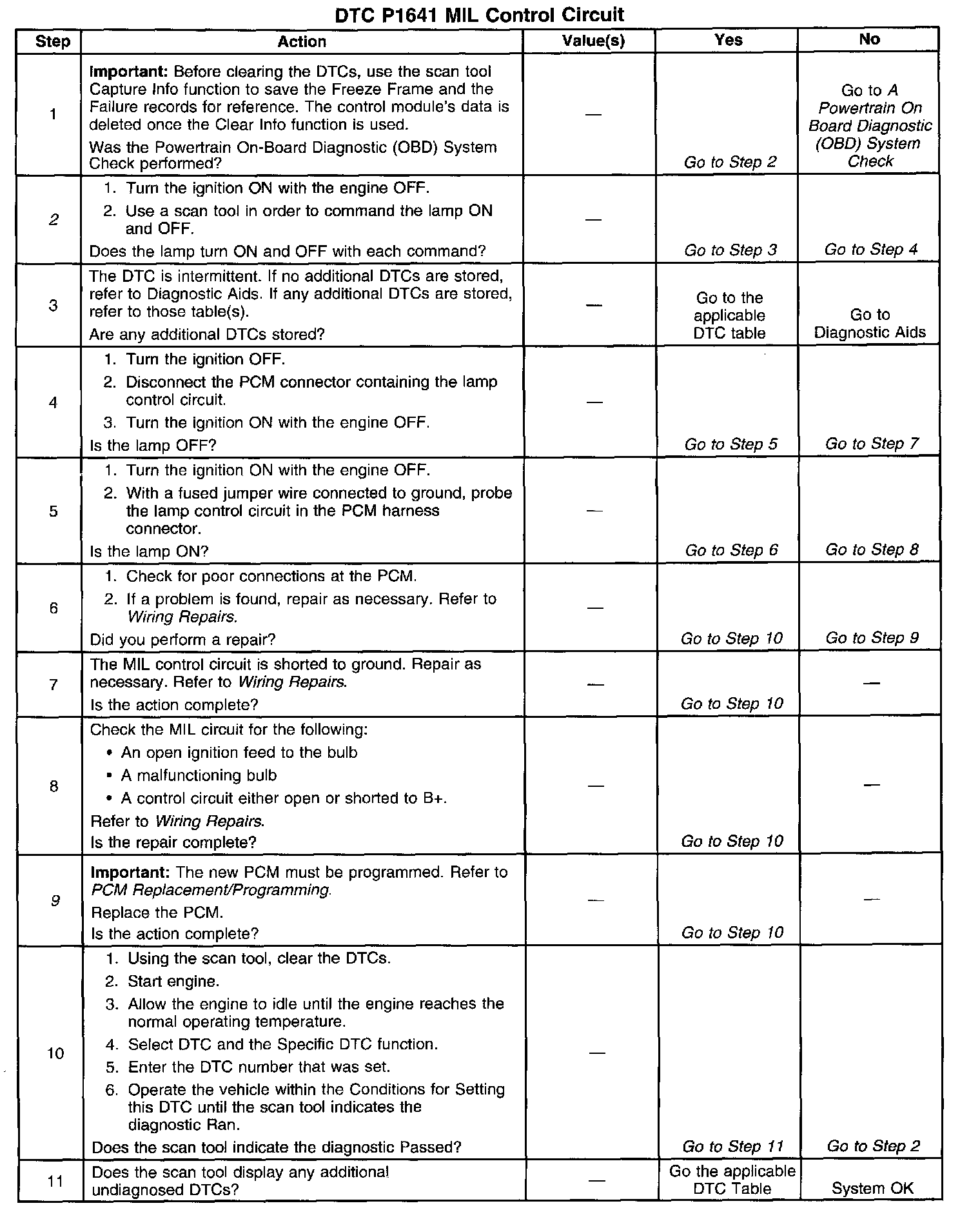 A malfunctioning bulb, the control circuit shorted to ground or battery voltage, will cause a P1641 to set.