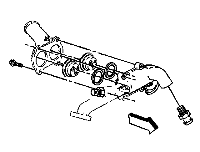 5. Remove the bolts attaching the thermostat housing to the thermostat.