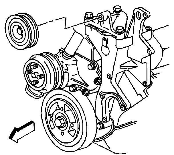 7. Install the idler pulley assembly (if vehicle is not equipped with A/C) to the left accessory bracket.