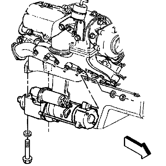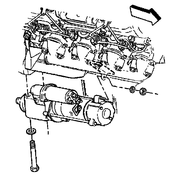 3. Remove the starter from the engine block (right side only) and secure out of the way.
