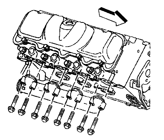 1. Install the exhaust manifold to the cylinder head (right side shown).