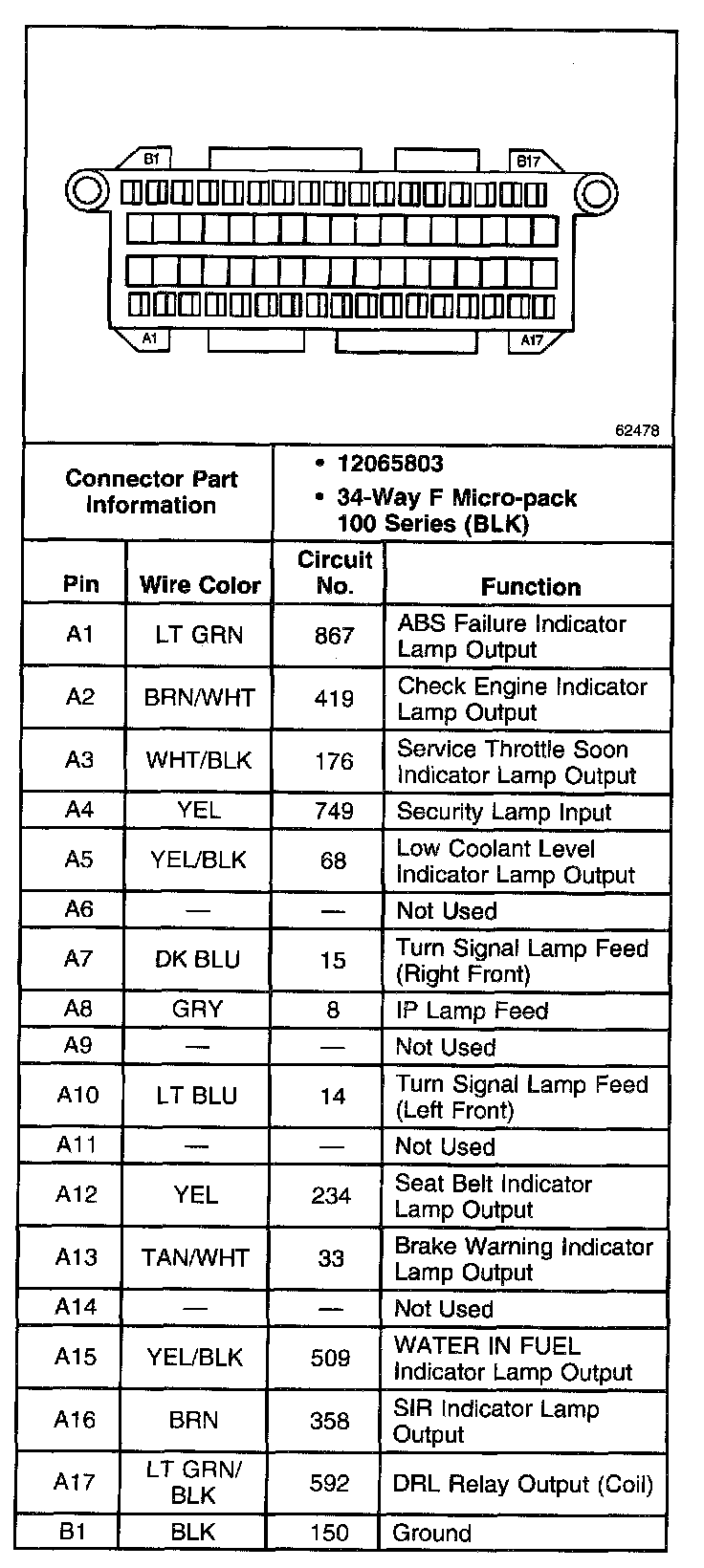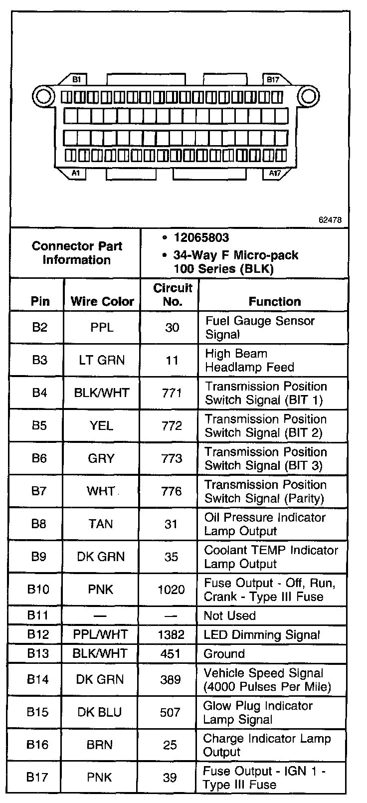 Instrument Cluster Connector (Diesel) (Part 2 Of 2):