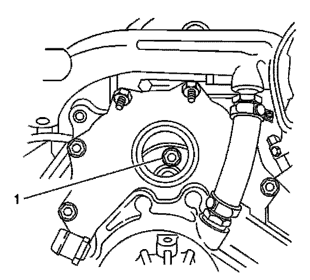 10. Rotate the engine in order to gain access to the bolts (1) that hold the driven gear to the injection pump. The access is gained through the oil filler neck hole.