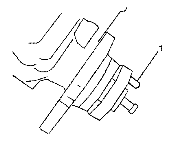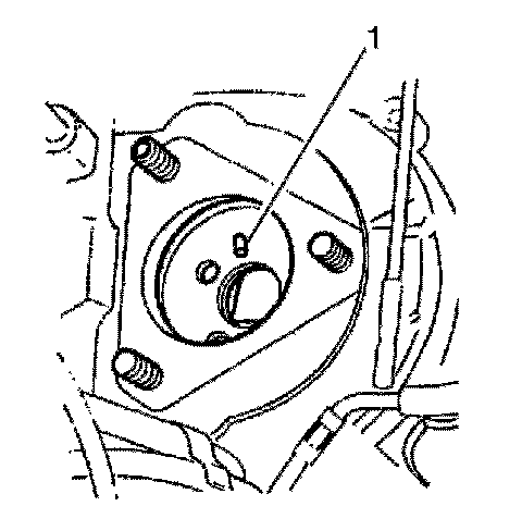 3. Install the injection pump, making sure the locating stud is positioned within the slotted/elongated hole (1) in the driven gear.