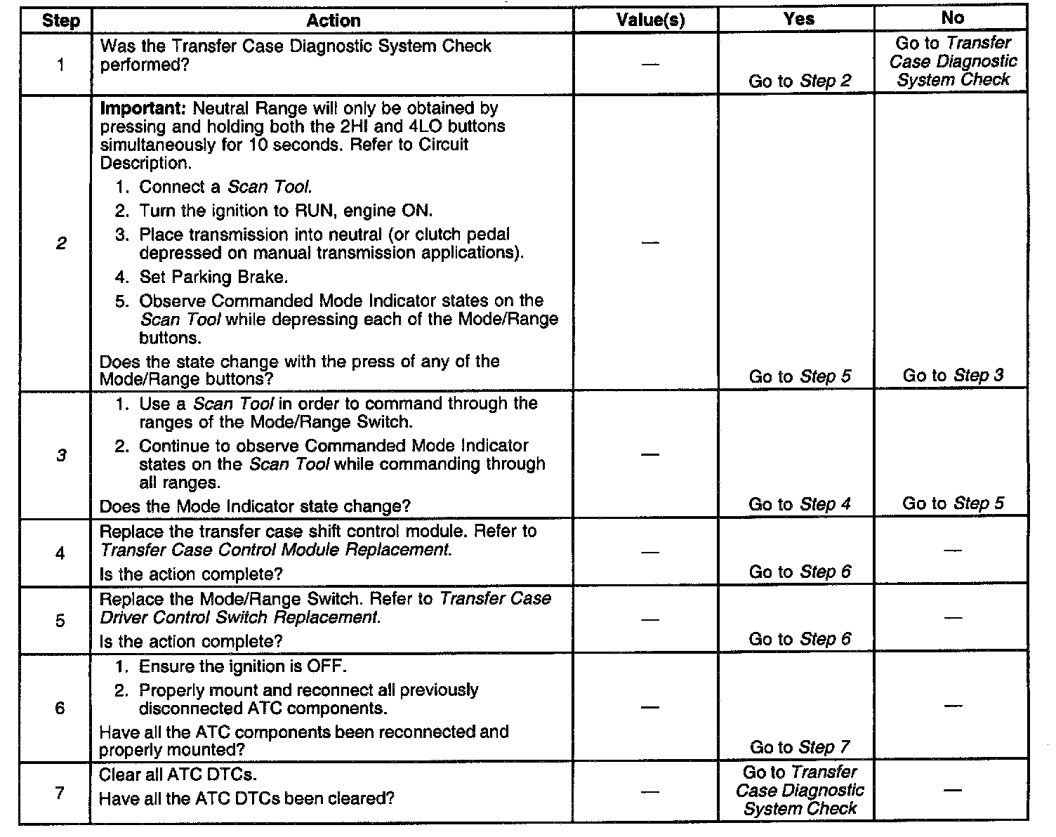 3. This step determines if the inability to change ranges is due to a faulty switch or transfer case shift control module.